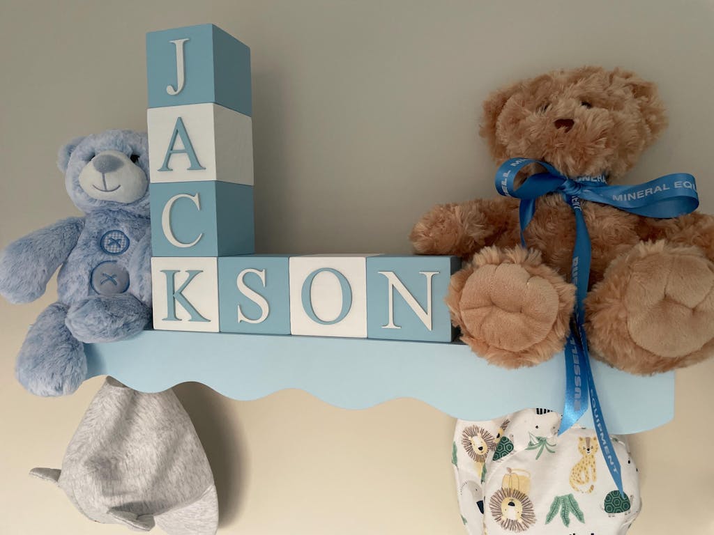 Complete your little one’s space with our beautifully handcrafted name blocks. Thoughtfully made to order, each set features your choice of two colors, creating a charming alternating pattern that adds warmth and personality to any nursery or playroom.